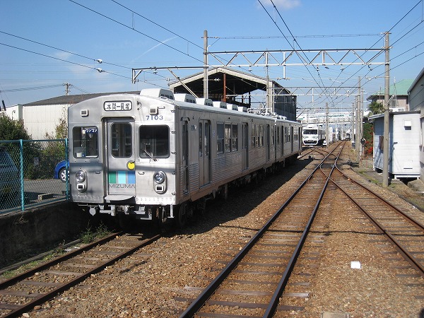 水間観音駅構内に休止保存されている No.7103+No.7003