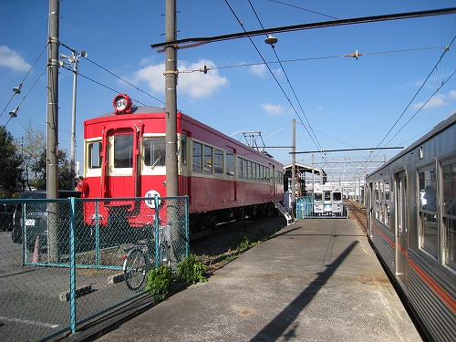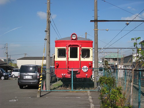 水間観音駅構内で静態保存されているNo.553(元南海モハ1201形)