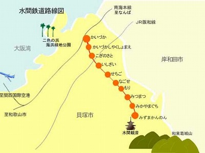 貝塚発11:35→水間観音着11:50 水間観音発11:57→貝塚着12:12