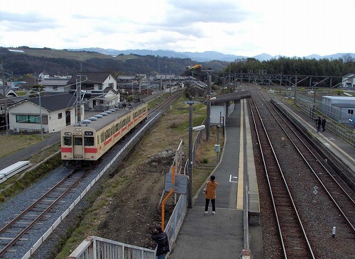 駅に入線する下り「437T」(7:51)