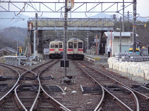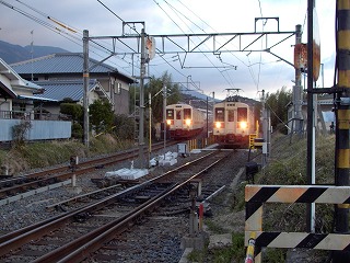 北宇智駅に並んだ、左「424T」、右「433M」 (6:45)