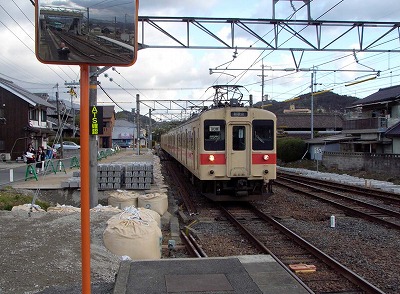 折り返し線から駅に進入 (6:28)